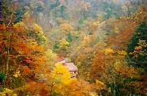 気持ちよい目覚めだった。撤収の用意していたら、小さなリスが5匹テントの近くをうろうろしていた。。まだ子のようだ。集団のリスは初めて見る。可愛いらしい。天気は今日も良さそうだ。今日はもう帰宅せねばならない。しかし一体家まで何キロあるのだろうか。ここは山形市だ…。あまり深く考えないようにしよう。楽しみながら行こうじゃないか。「朝までに帰宅すればいい」くらいの気持ちでいよう。 6:13発。南へ向かうのだ。まずは、大平温泉を目指す。米沢あたりで、道が分かりにくくなる。磐梯方面への道へ出たら、大平の看板があった。これで、すんなり行けた。噂通りの凄い道になる。カブはローを多用。道幅が狭いのが気になる。車だったら大変だろう。2輪の方がよい。何しろ急坂なのだ。狭いし。カブではやはり辛いな。荷物も多いので、途中ローの半クラッチ状態にもなる。オーバーヒートが怖い。駐車場は峠にあって、その100mくらい下に宿泊者が道の脇に車を停めている。ここから、下の沢までは歩きなのだ。峠の駐車場に置く。ここから下の沢まで下るのだ。これはちょっと絶句する。。何しろ崖を降りていく様なもんだ。東北一の秘湯を自称するだけの事はある。紅葉は見事。天元台の建物がよく見える。下りでも15分ほど掛かるか。登りは大変と思いながら下る。吊り橋を渡って大平温泉である。8:13まだ早い時間だが、入浴させてもらう。500円。左手の川沿いに露天風呂がある。旅館からは丸見えになるかな。男女別だ。熱いー。身体が温まれば、熱めでいい湯だ。透明な湯だ。紅葉を眺めながら入る。確かに秘湯だ。帰りはあの坂を登り返さねばならない。ゆっくりと登る。宿泊客は途中まで荷物を滑車というかロープウェーで運んでくれるようだ。そこからも結構あるよ。帰りは30分以上掛かった。往復50分というとこか。来た道を、カブで下るのも嫌な感じだ。車が来たらアウトなのでクラクションを鳴らしながら行く。途中、道にカモシカがいた。白い綺麗な毛並みだ。近くの草の中に隠れてこちらを伺っている。可愛い奴。 ![]() 予想以上に時間を費やした。R13福島方面の近道を行く。が、ダムの所で完全通行止め。先ほどの看板はこれのことだったのだ。がーん。ちゃんと読むべきだった。仕方ないので戻る。この時なんとなく急いでいて、地図をチェックしなかったのは失敗。途中の脇道を行けば、そのまま滑川温泉に行けたのだ。ほんの直ぐだったのに。結局、訳のわからん道に入って、人に道を聞いてやっとR13に出る。西栗子トンネル過ぎにグレ電発見して、メールチェック&送信。板屋から滑川温泉に向かう。10:35滑川温泉着400円。内湯に入る。この湯はいい感じの混浴だ。女性専用もあるようだ。のんびりくつろぐ。予想外に時間をくっているなー。思い通りにはいかない。途中の販売機で490mlのスポーツドリンクを飲む。昨晩からちょっと水分が足りない感じなのだ。これで生き返る。 滑川温泉から、高湯までは近かった。ツーリング2日目に通過したのだが、やはり山と温泉はセットにしたい。ここをパスすると後々後悔すると思う。戻る格好になるが寄る。12:22何処にしようか迷ったが、食事と日帰り専門のような「ふじ屋」にした。500円。この湯は色が見事だ。お湯の色だけでで名湯と言えるのではないだろうか。白い硫黄系にコバルトブルーが入っていて、高級そうで、いかにも効きそうだ。まず内湯でくつろぐ。木の湯船で気持ちよい。日本屈指の薬湯だそうだ。露天へ行く。この露天が素晴らしい。大きくて綺麗なのだ。男女別。この温泉をツーリングの締めにしたのは正解だ。こんな温泉が近くにあれば最高なのだがな。なんたる幸せ。